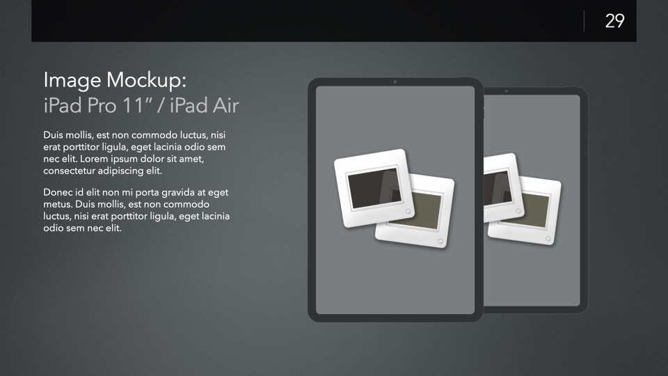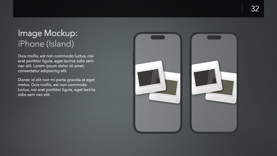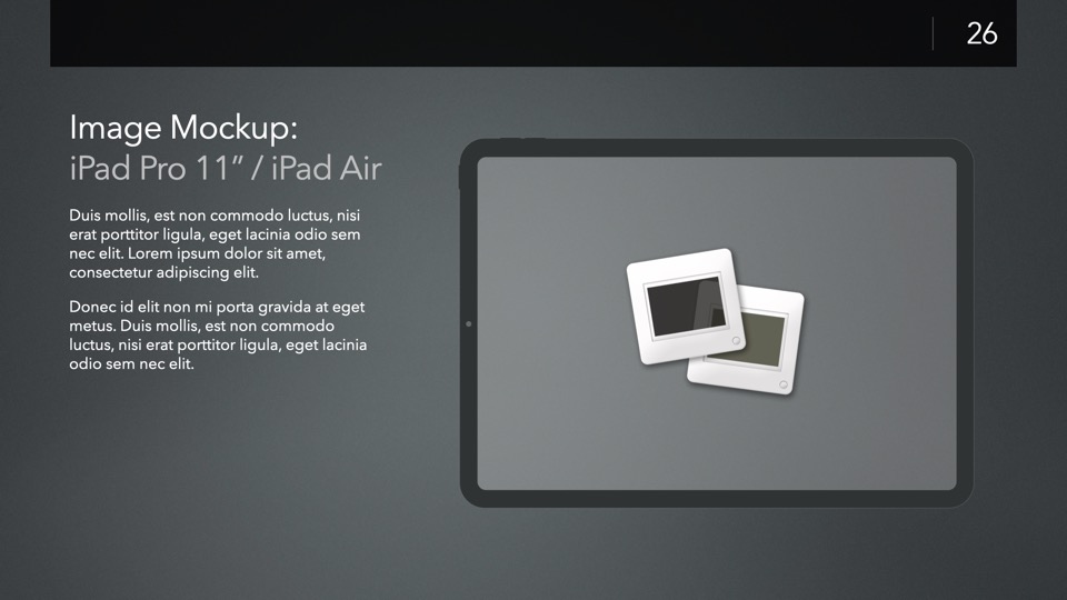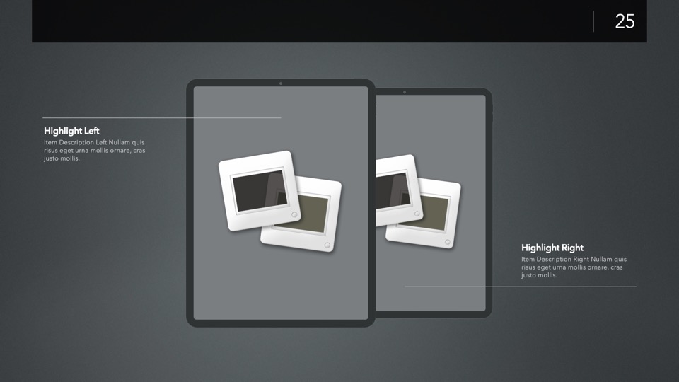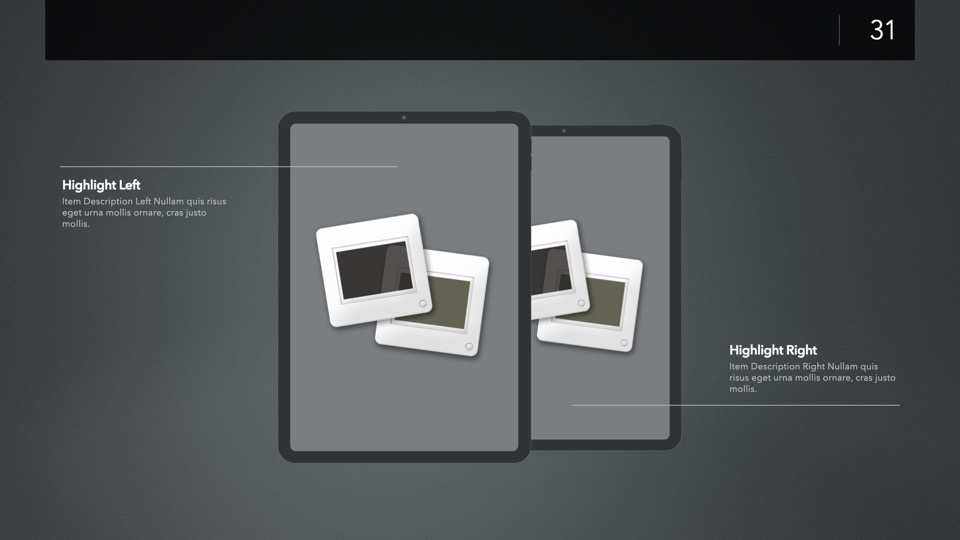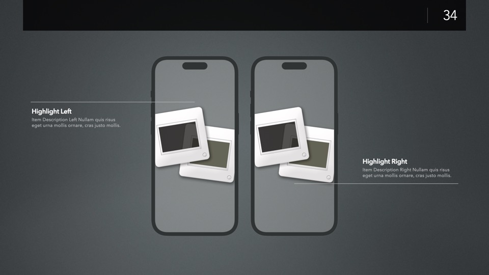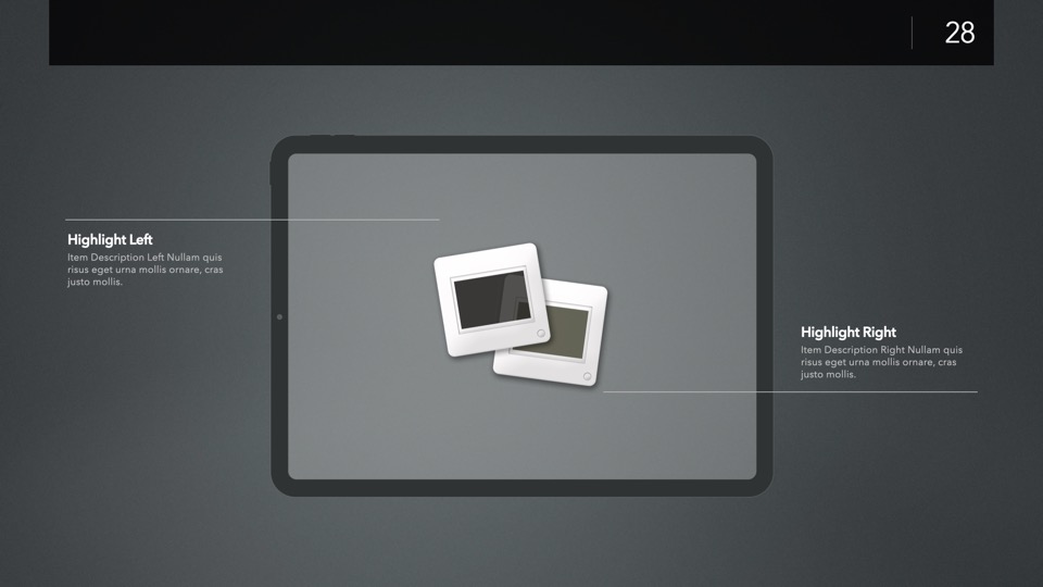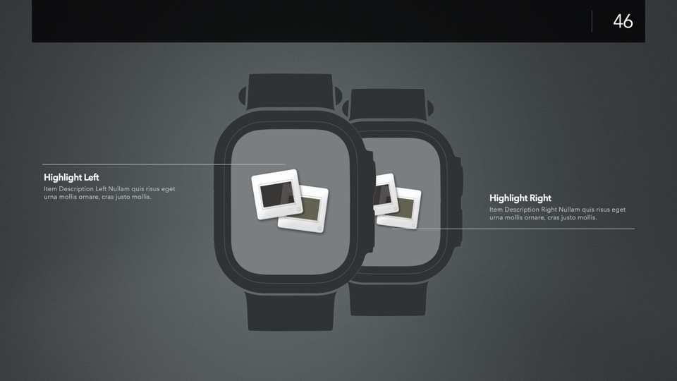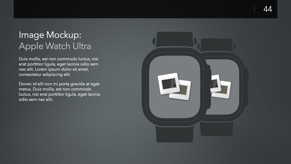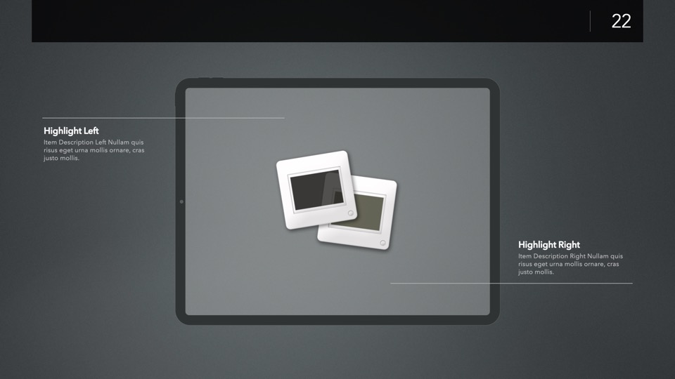 Device Mockup Templates enable you to showcase your apps, concepts, and designs on a range of illustrated Apple-centric hardware, including narrative, metics, and highlight layouts featuring the Studio Display, iMac, MacBooks, iPads, iPhones and Apple Watches.