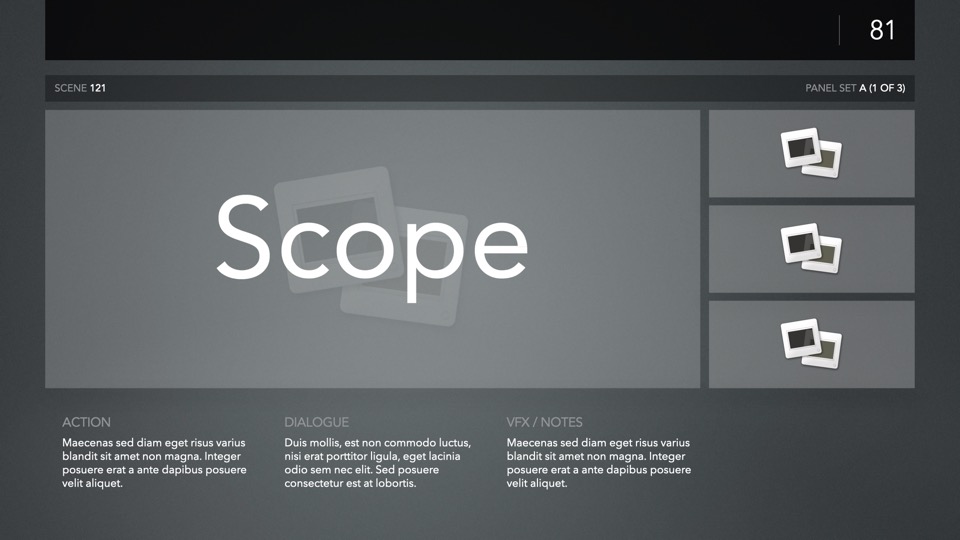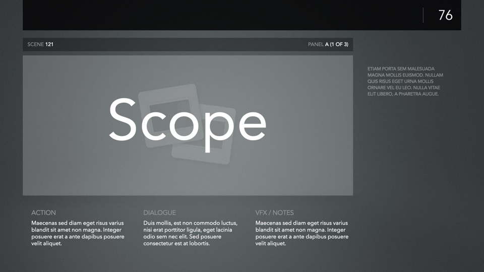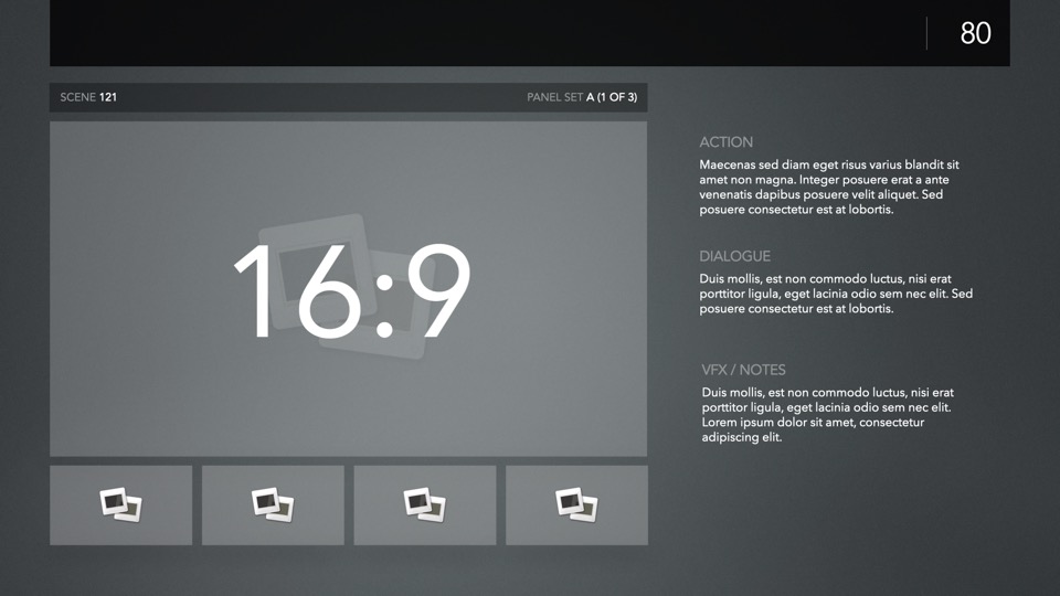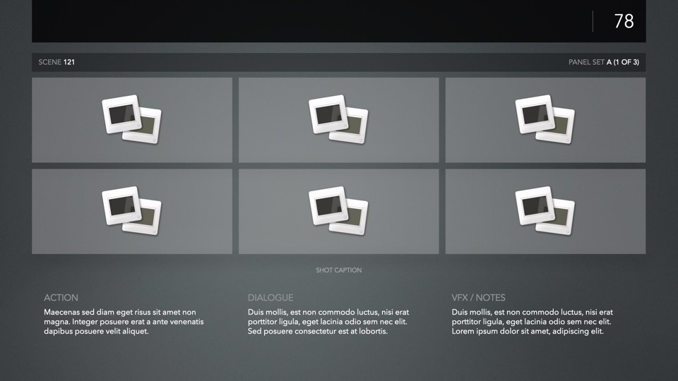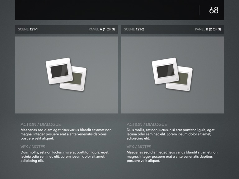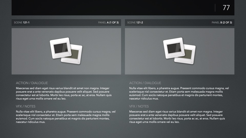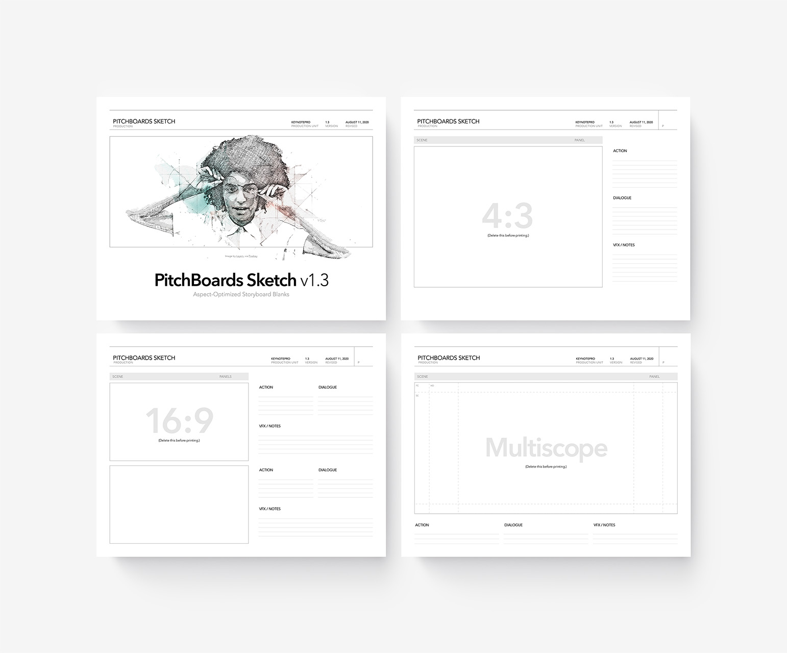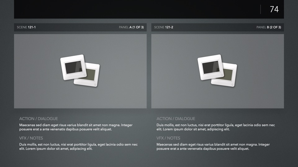 PitchBoards Sketch makes it easy to print storyboarding blanks for 4:3, 16:9, Scope, and Multiscope ratios directly from Pages – so you can start sketching your boards or drafting your pitch before you've started a single slide in Keynote.