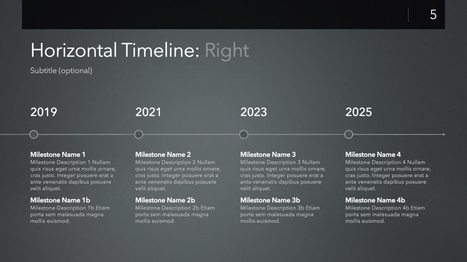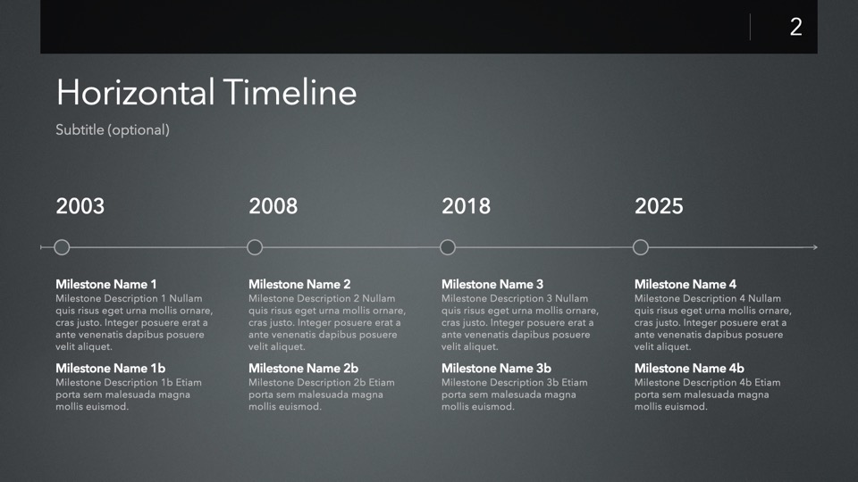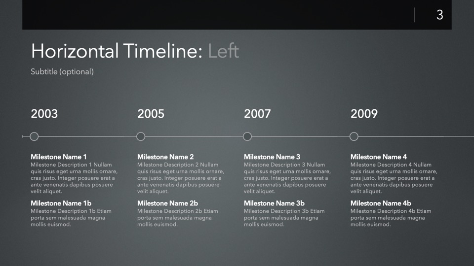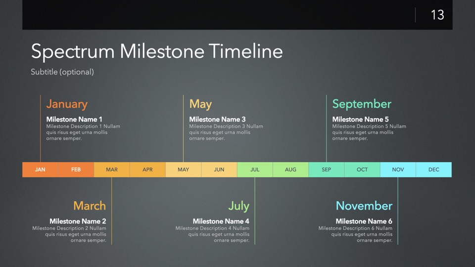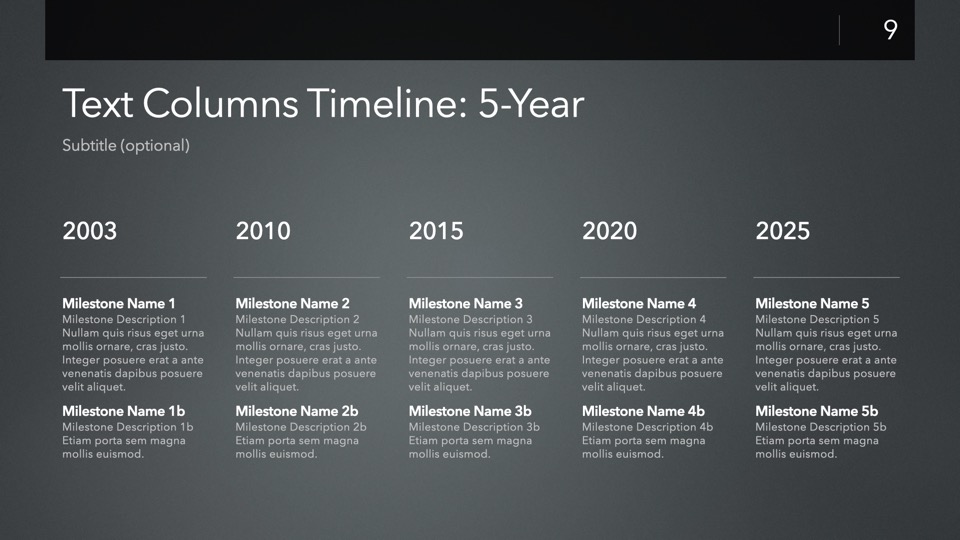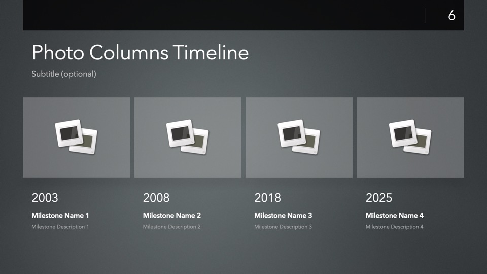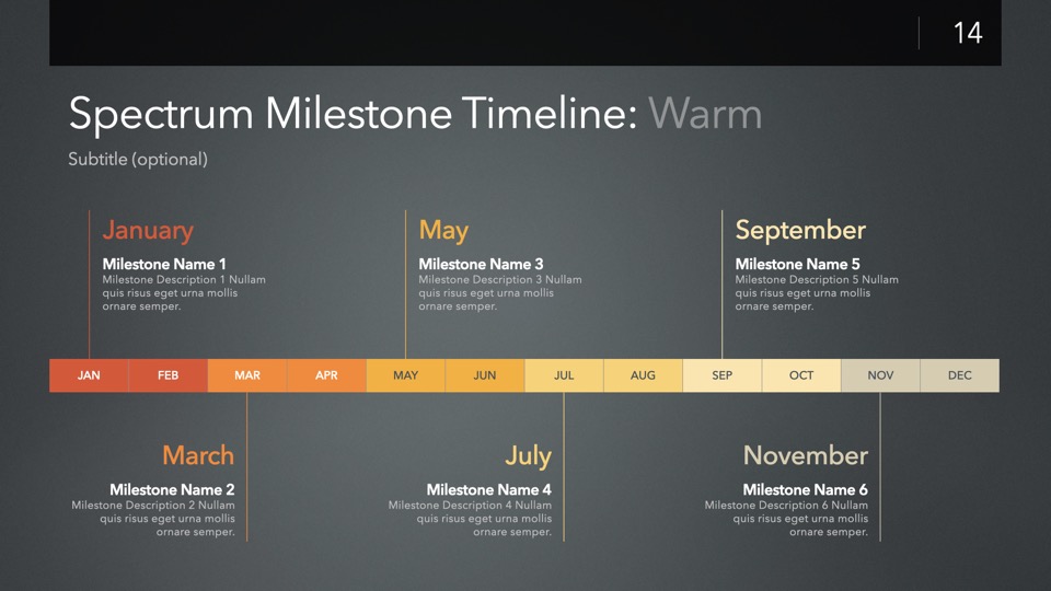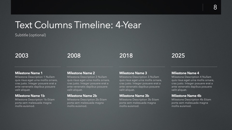 Timeline & Budget Table Templates includes multiple styles of Milestone Timelines, Multi-Track Project Timelines, and "Smart" Film Production Budget Table slides ready to Copy & Paste into your PitchBoards Neo presentations.