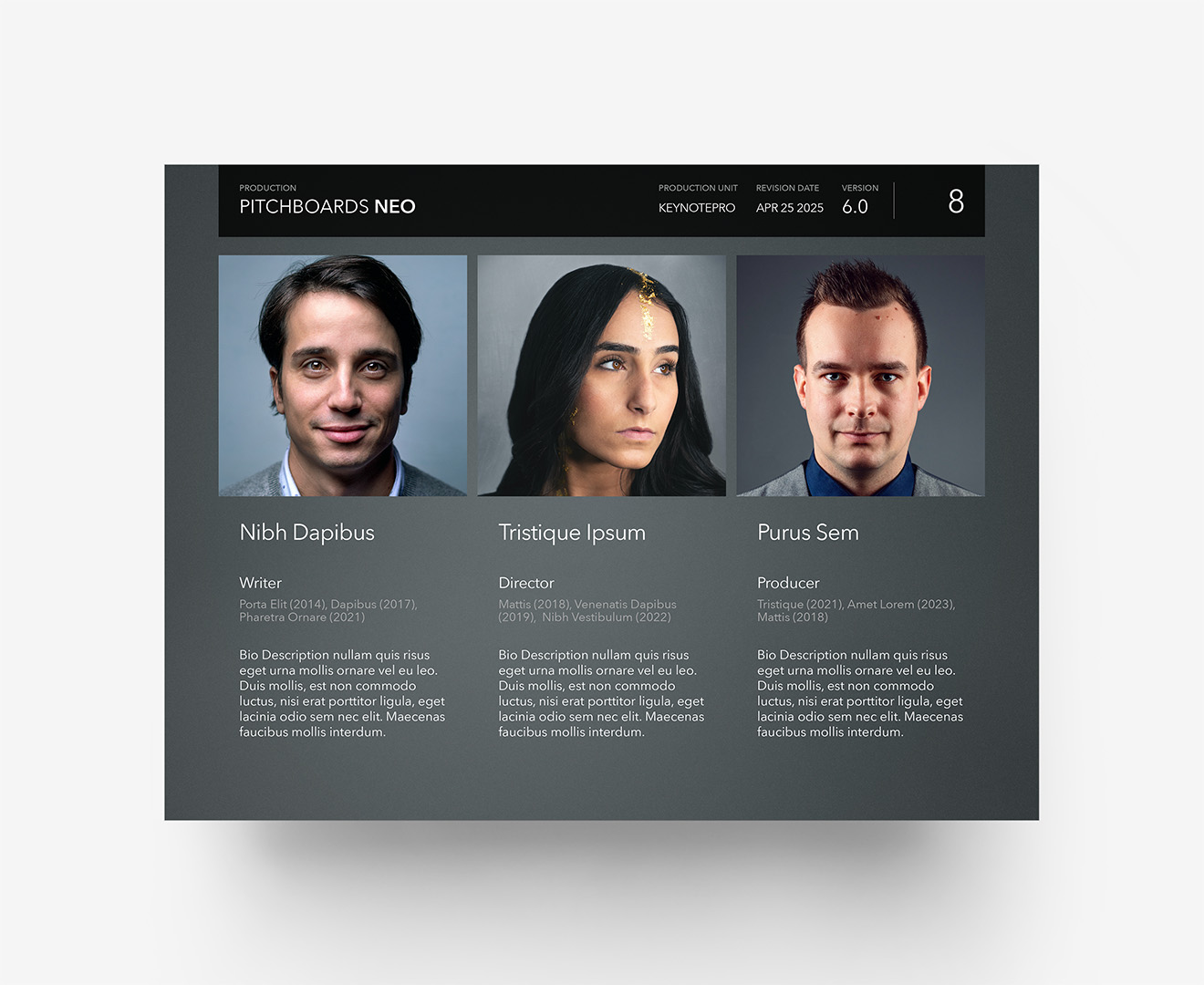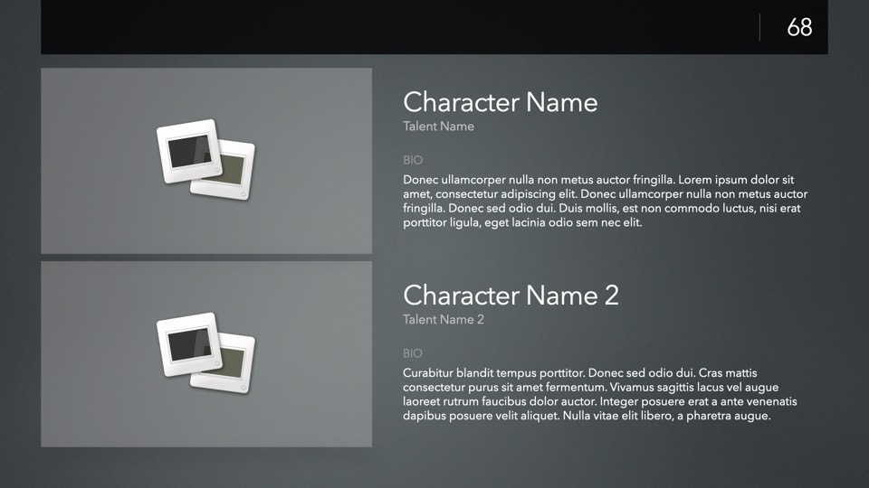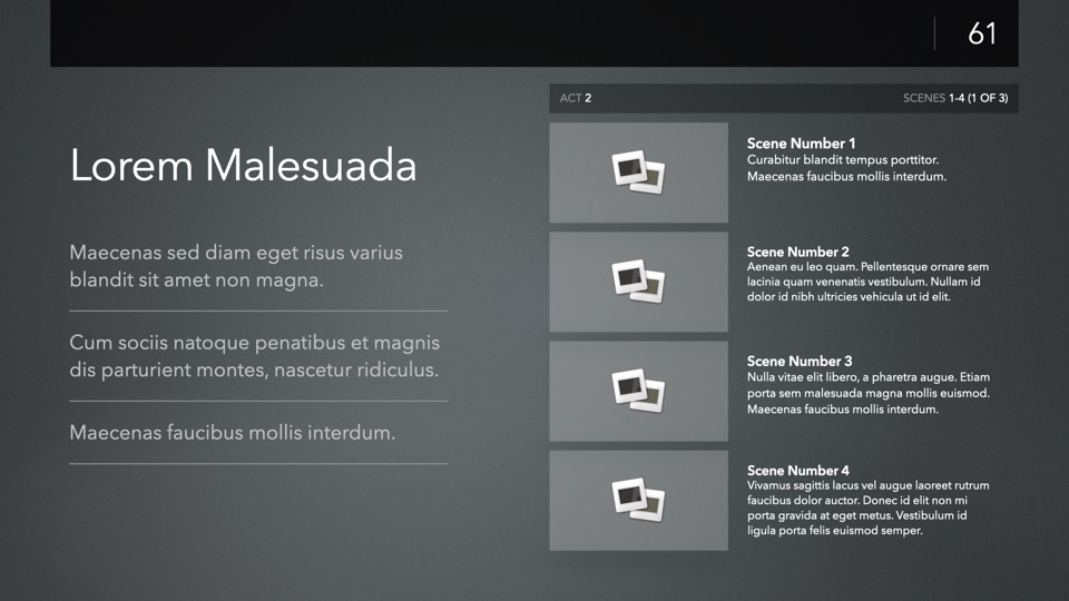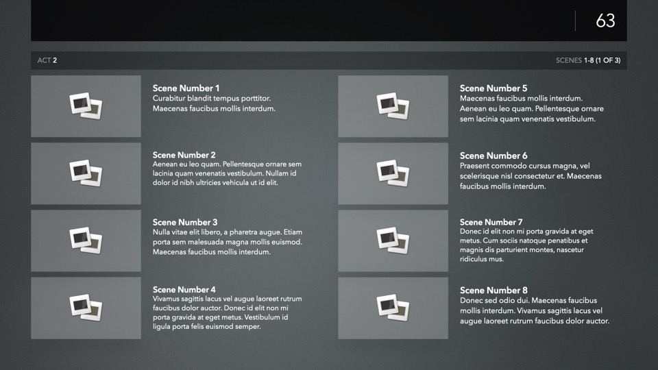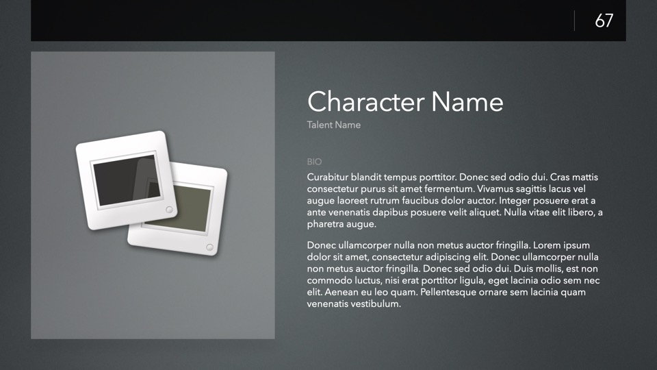 Since the dawn of Keynote itself, PitchBoards has been the go-to solution for film and video artists in need of a professional-grade pitch platform for meetings, story-board presentations, or any presentation where your ideas need to take center stage. The new Neo Edition is a full-system reboot of the classic NXT architecture – with a completely modernized, modular core framework that brings nearly a decade's worth of improvements to the underlying theme structure – along with dozens of new layouts, extras, and platform optimizations for the new Composer Engine, including an all-new MetaBar Builder assistant.