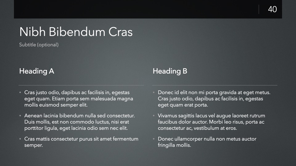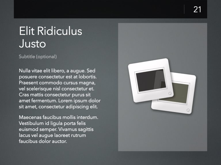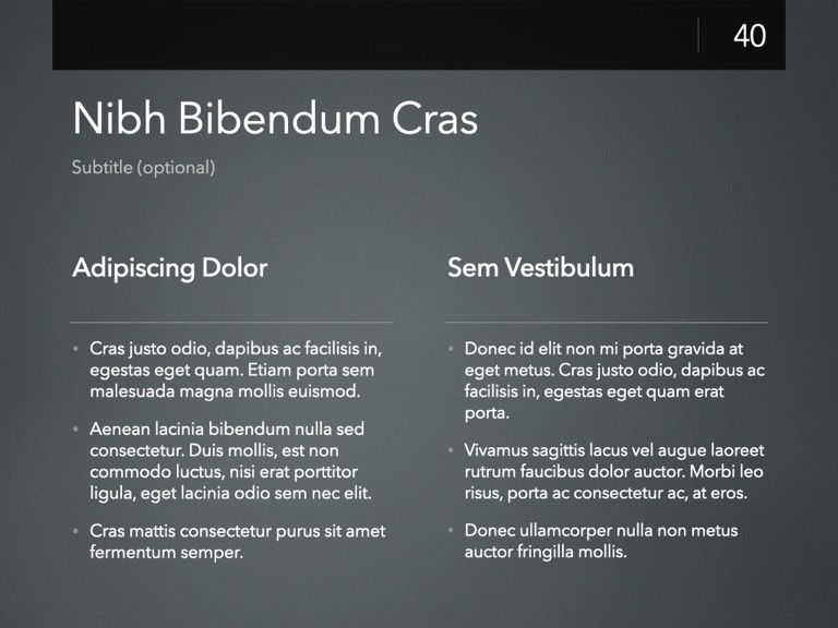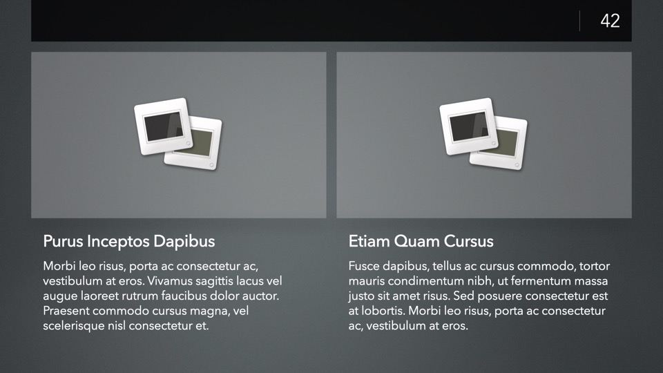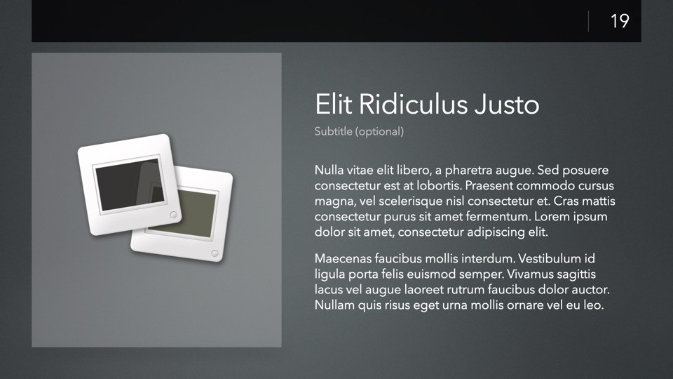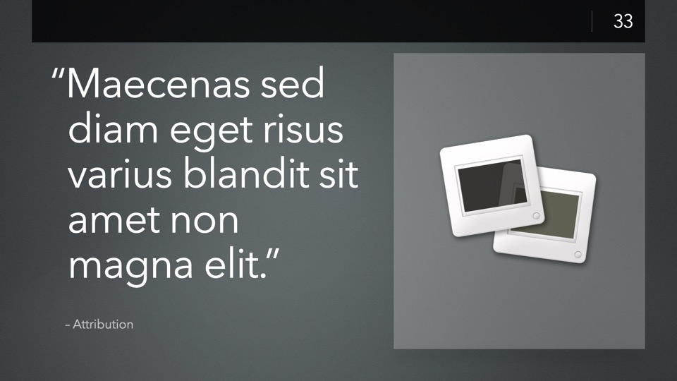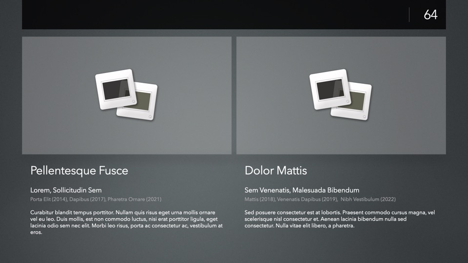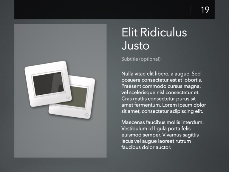 Completely Re-Designed for Keynote 14+, with a modernized, modular core framework that brings nearly a decade's worth of improvements to the underlying theme structure.