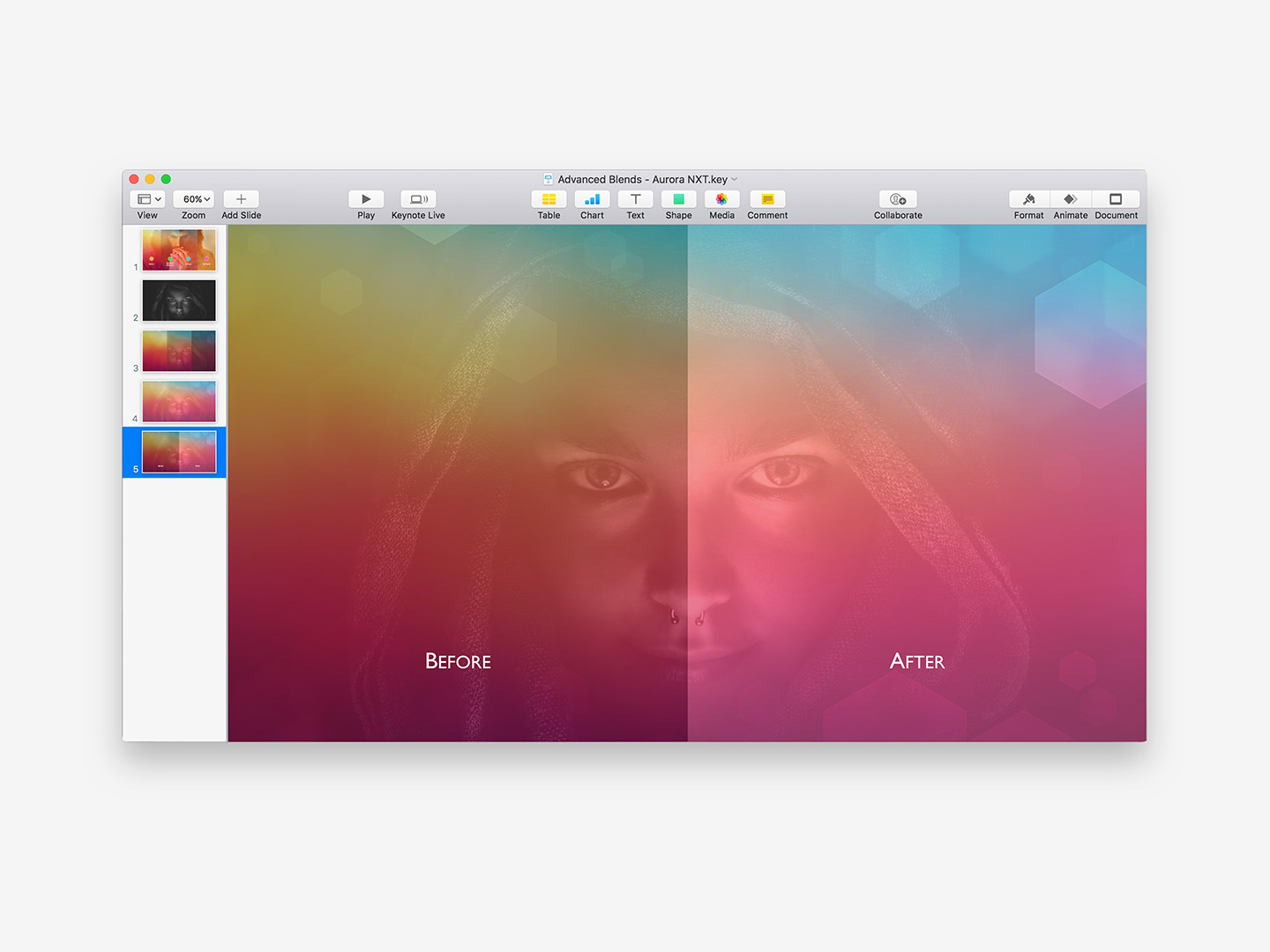 Explore Keynote's Image Adjustment Tools to perfect your Blended Images natively.